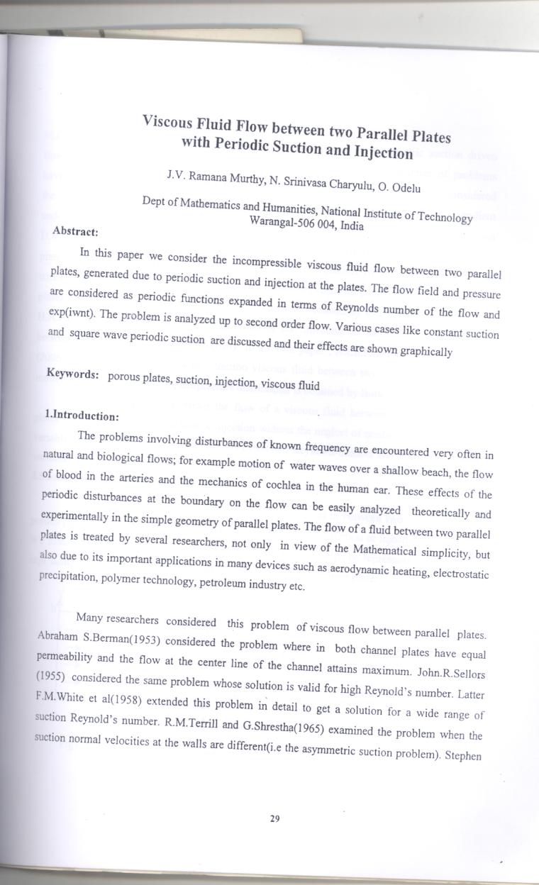 http://localhost:8080/xmlui/handle/123456789/1972| Title: | Viscous fluid flow between two parallel plates with periodic suction and injection |